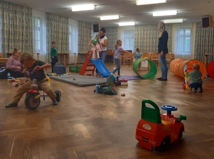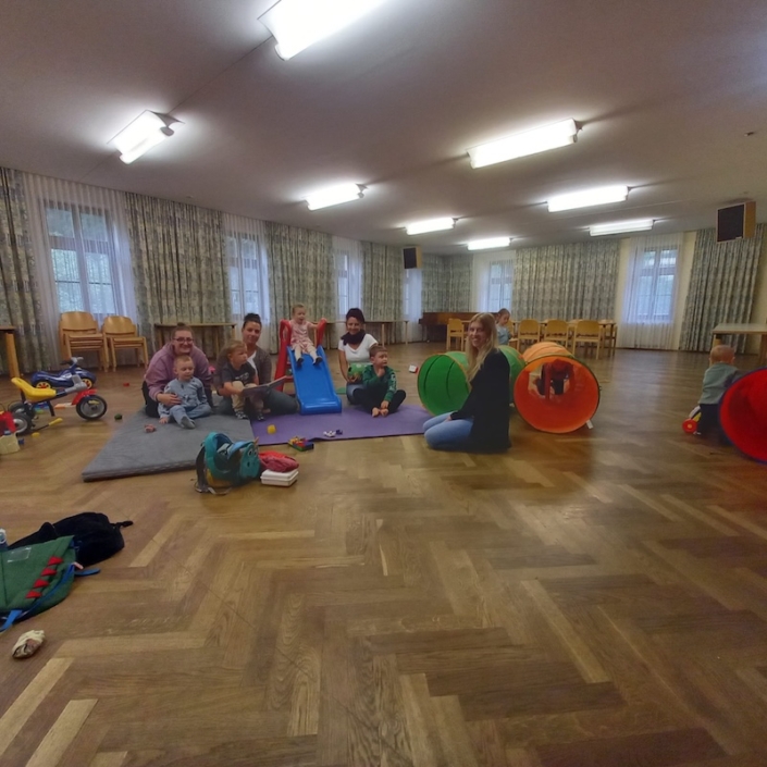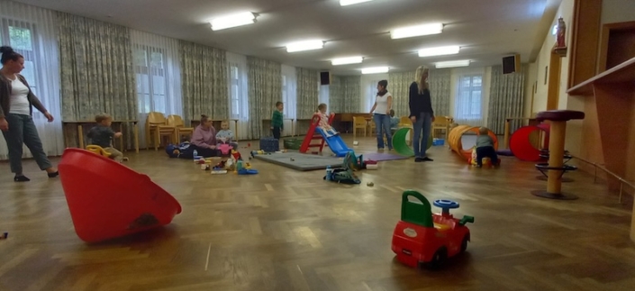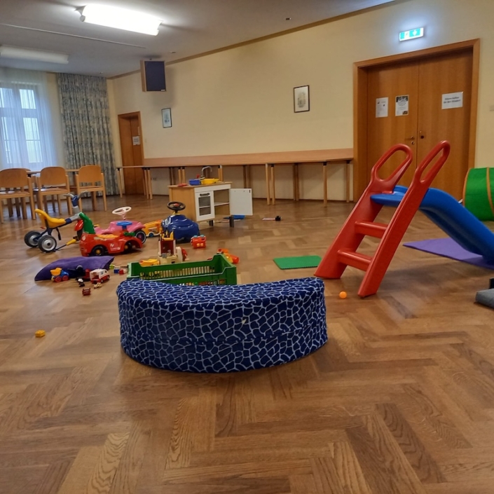 Der Pfarrsaal in Kierling bietet den Kleinen eine sichere Umgebung zum Spielen und Toben. Bei schönem Wetter nutzen wir den Garten oder treffen uns am Spielplatz!