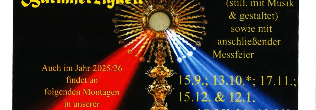 ✞ Abend der Barmherzigkeit & Rosenkranz Montag, 13. Oktober 2025/in Gottesdienst /von events Eucharistische Anbetung, sakramentale Versöhnung und Aussprache, Messfeier. Heute mit Rosenkranz Wann Mo., 13. Oktober 2025 18:00-19:00 Zum Kalender hinzufügen ICS herunterladen Google Kalender iCalendar Office 365 Outlook Live Wo Kirche St. Peter u. Paul Kirchenplatz 1, Kierling, 3400 https://www.pfarre-kierling.at/wp-content/uploads/2025/09/abende.jpg 1169 1653 events http://www.pfarre-kierling.at/wp-content/uploads/2021/02/KK_logo-quer-300x128.gif events2025-09-07 05:28:432025-09-07 05:28:43✞ Abend der Barmherzigkeit & Rosenkranz